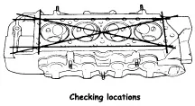 Lakukan pengukuran kerataan kepala silinder seperti pada gambar di bawah ini :